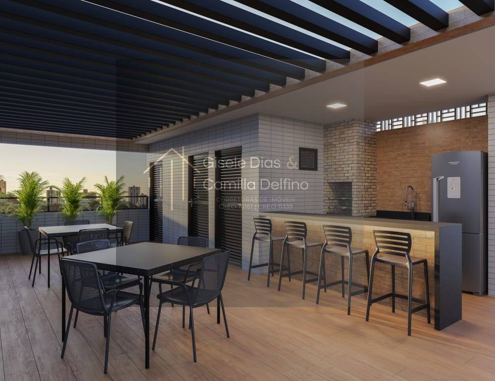 Aptos duplex com metragens de 110,96 e 119,99m², distribuídos em 03Qts sendo 01 suíte, sala p/ 02 ambientes, cozinha, wc social, escada com acesso privativo ao pavimento superior exclusivo com: piscina, solarium com área gourmet e Wc. Possui 02 vagas de garagens.